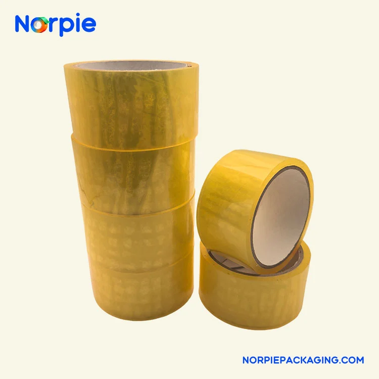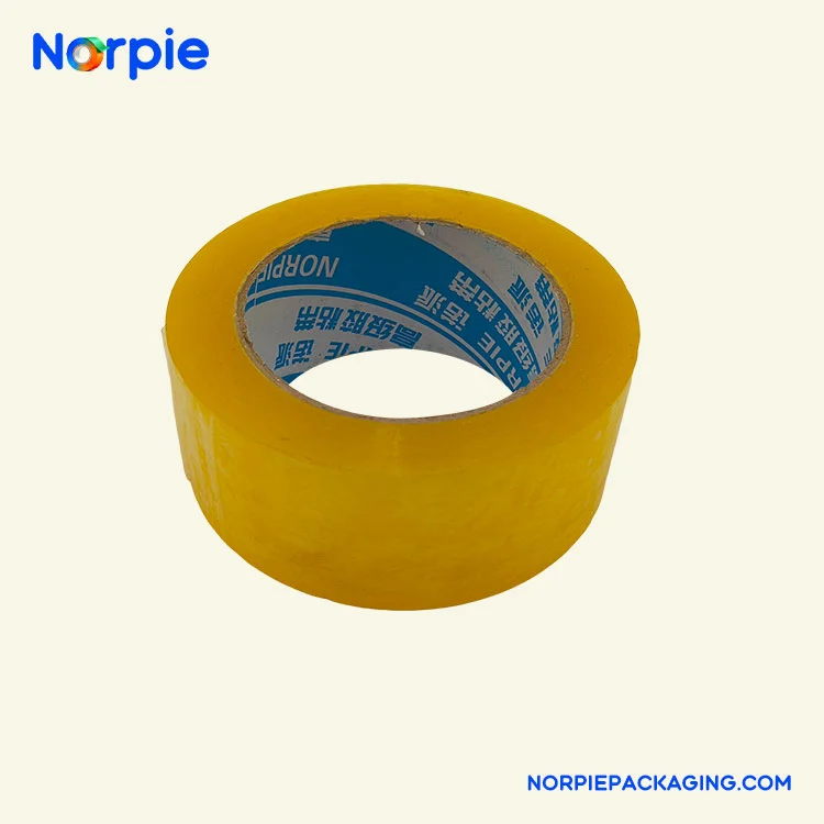 Norpie® виробляє світло-жовту пакувальну стрічку, використовуючи в якості основного матеріалу плівку преміум-класу BOPP, покриту екологічно чистим акриловим клеєм на водній основі, чутливим до тиску. Продукт має товщину 0,048 мм, початкову липкість принаймні 12# сталевої кульки та час збереження липкості понад 20 годин, що забезпечує чудову ефективність з’єднання та екологічні переваги. Клей на водній основі нетоксичний і не має запаху, вміст ЛОС значно нижчий за національні стандарти, і підходить для використання при температурах від -5 ℃ до 50 ℃.